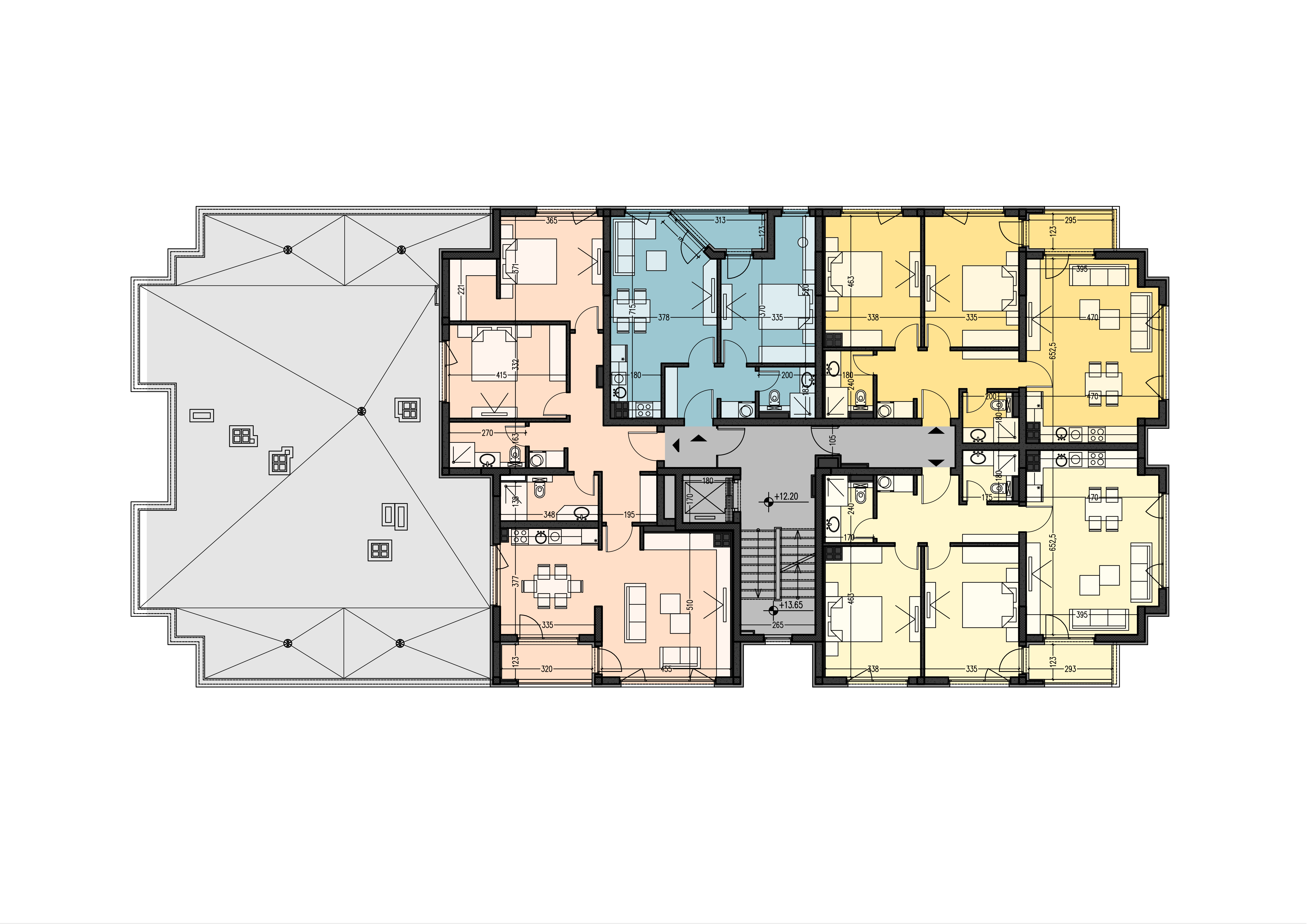 Конструкцията на сградата е монолитна стоманобетонна, скелетно-безгредова.