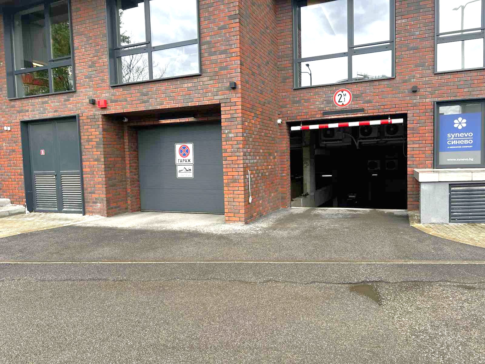 Автоматична врата с дистанционно управление на входа за подземното ниво на сградата.