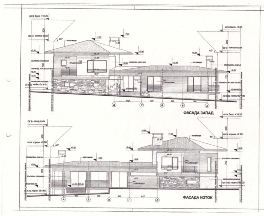 Втори етаж: родителска спалня с балкон и дрешник към нея, две детски спални, едната от които е с балкон, една баня с тоалетна;
